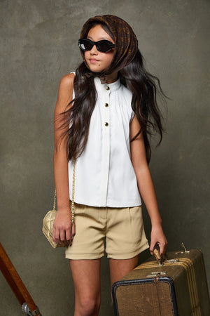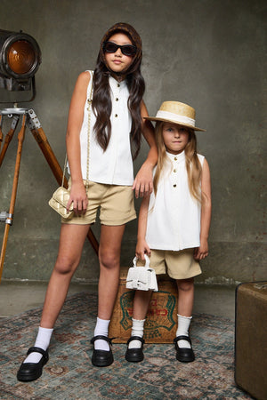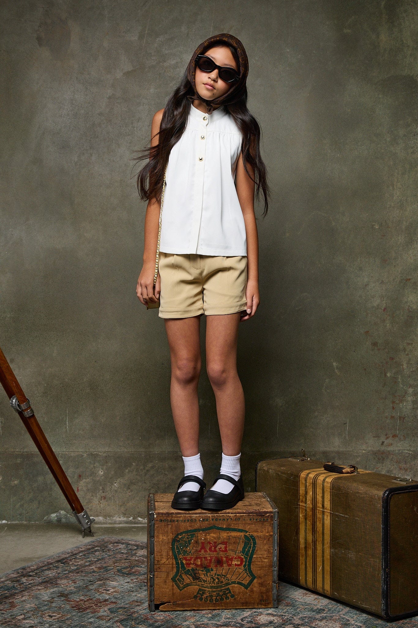 Functional side pockets and belt loops add versatility, making them as practical as they are stylish. Pair with crisp blouses, lightweight knits, or casual tees for timeless summer sophistication in luxury children’s fashion.