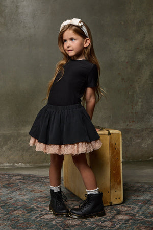Isla Multi-Layer Tulle Skirt – Luxury Girls Party Skirt with Satin Waistband & Embroidered Lace Hem